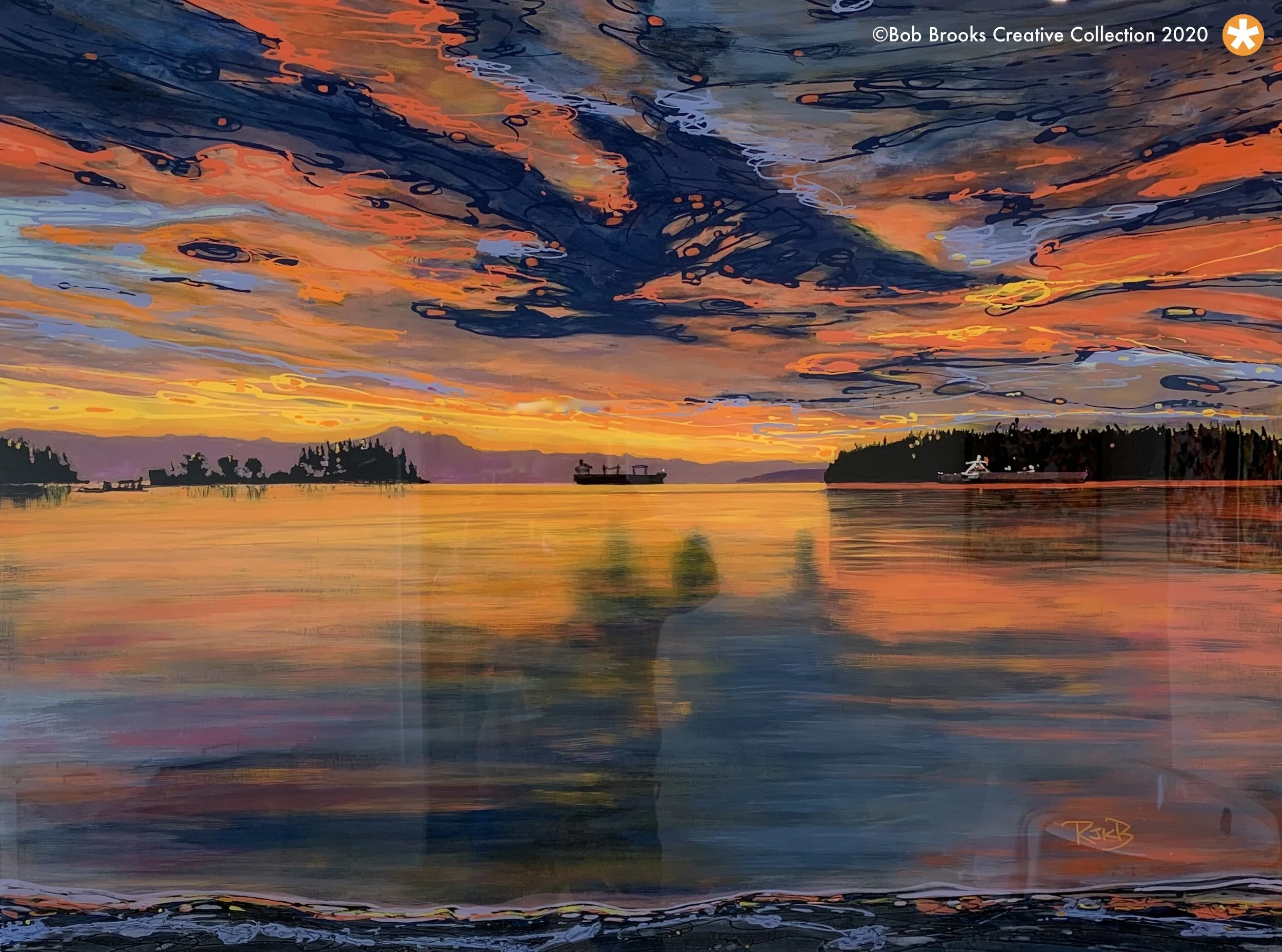 “Departure Bay Sunrise was an opportunity to capture the brilliance of the colours of the morning sky. These fiery hues contrast beautifully with the darker silhouette of the islands and ships beginning their day in the bay.”