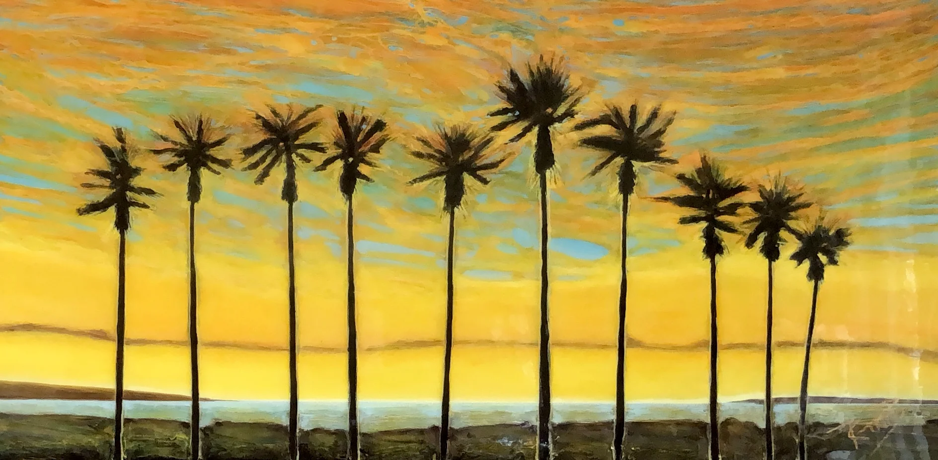 “I loved working on this commission for a wonderful couple - friends who inspire us by their love of travel. I was inspired by their love of sun drenched coasts and majestic palms. The colours of the sky invoke a fire that powers this image for me.”